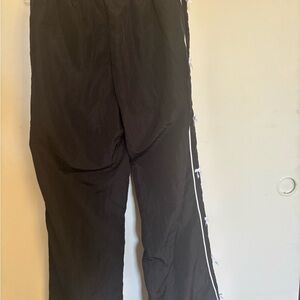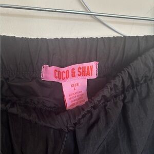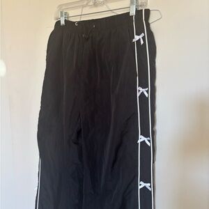 Elevate your casual wardrobe with these sleek black jogger pants. Featuring stylish side ties, they offer both comfort and a modern look.