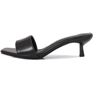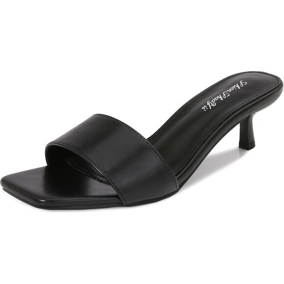Women's Black Kitten Heels Sandal Heeled Slides Square Open Toe One Band Slip On