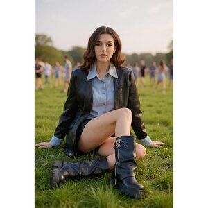 ⚡Women's Black Knee High Riding Boot Chunky Platform Low Heel Round Toe