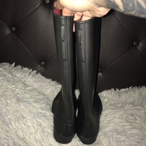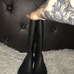 Step out in style with these sleek black knee-high boots. Perfect for any occasion, these boots offer both comfort and elegance.