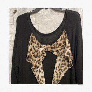 Women's Black Knit Sweater With Animal Print Bow by Moa Moa/ EUC Excellent Used Condition/No Holes, Pulls or Stains/See Pictures for Measurements, Fits like XL or 1X, Has Stretch/Bow can be Worn in Front or Back!/Beautiful Sweater for Fall, Winter/Smoke Free Pet Free Home