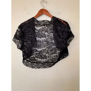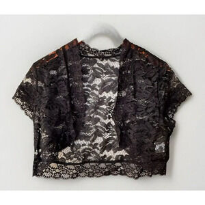 Womens Black Lace Cardigan Size Medium Cropped Short Sleeve Gothic