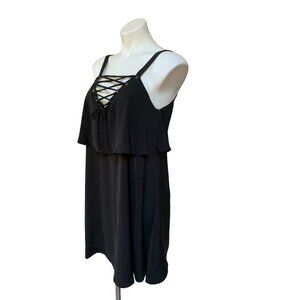 Women's Black Lace Front Flounce Top Mini Dress Size Small