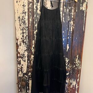 Women’s Black Layered Fringe Detail Halter Dress.  Size M.