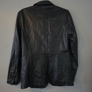 Women's Black Leather Jacket Blazer. Button Front. Long Sleeves. Size Small
