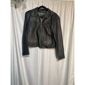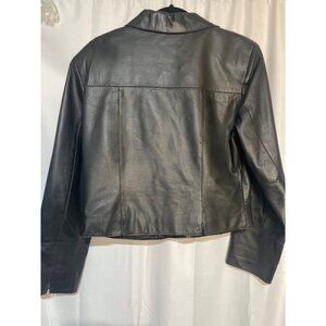 Womens Black Leather Jacket With Zip Front & Pockets By Saguaro Size M