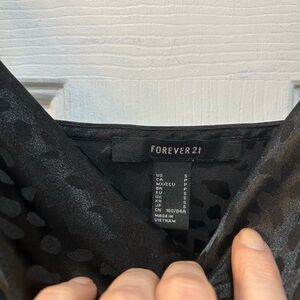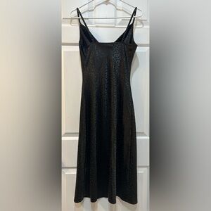 Women's Black Leopard Slip Dress Midi Sateen Pullover Adjustable Strap Sz S