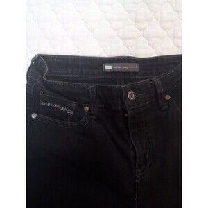 These Women's Black Levi Denim Jeans are a sleek and stylish choice for any woman's wardrobe. The mid-rise, skinny fit gives a flattering silhouette, while the black color adds a versatile touch. Made from denim fabric, these jeans are long-lasting and perfect for everyday wear. With a size 6 and 28x32 inseam, these jeans are designed to fit comfortably and stylishly.