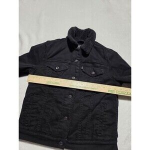 Womens Black Levis Strauss Sherpa Collar Trucker Denim Jean Jacket Small Petite