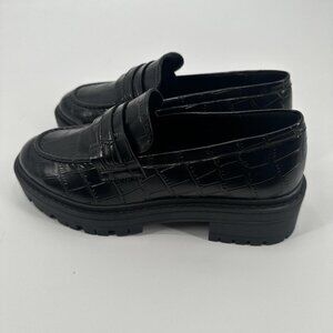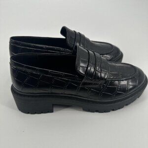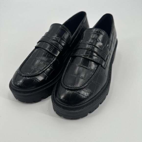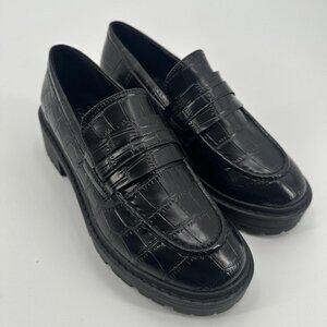 C Paravano Loafer Shoes Womens Size 6 Black Croc Embossed Chunky Lug Sole
