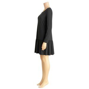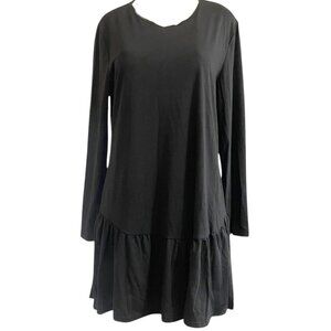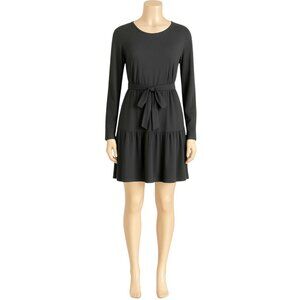Women’s Black Long Sleeve Relaxed Fit Layered Dress XL Knee Length Self Tie Belt