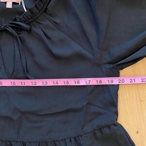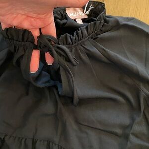 New size XS Show Me Your Mumu black short tiered dress called Viola. 100% polyester lightweight and 3/4 sleeves. You can dress it up or down with sandals sneakers wedges or boots! Measurements are in the pictures. Thank you for considering my item.