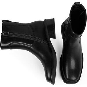 Women's Black Low Heel Square Toe Chunky Short Boot Fall Boots with Side Zipper