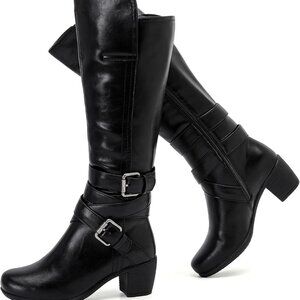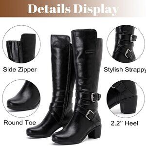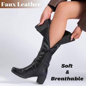 Features: Crafted from high-quality man-made leather with a soft, leather lining for all-day comfort. These knee-high boots feature a sleek pointed toe, a sturdy chunky heel that adds femininity, and a classic side zipper for easy on and off. The anti-slip rubber outsole makes walking smooth and safe, perfect for any occasion from casual days to nights out.