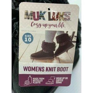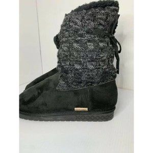 Womens Black MUK LUKS Cable Knit Faux Shearling Fold Over Boots Size 10