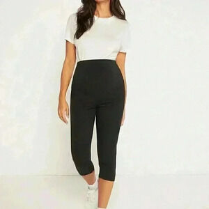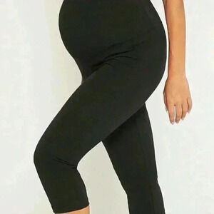 Womens Black Maternity Adjustable Waist Capri Leggings