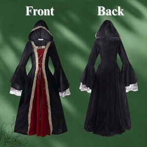 Special Design - Floor Length Medieval Long Dresses, Flare Sleeve with lace, vintage, renaissance princess queen costume dress with hooded.