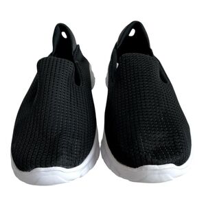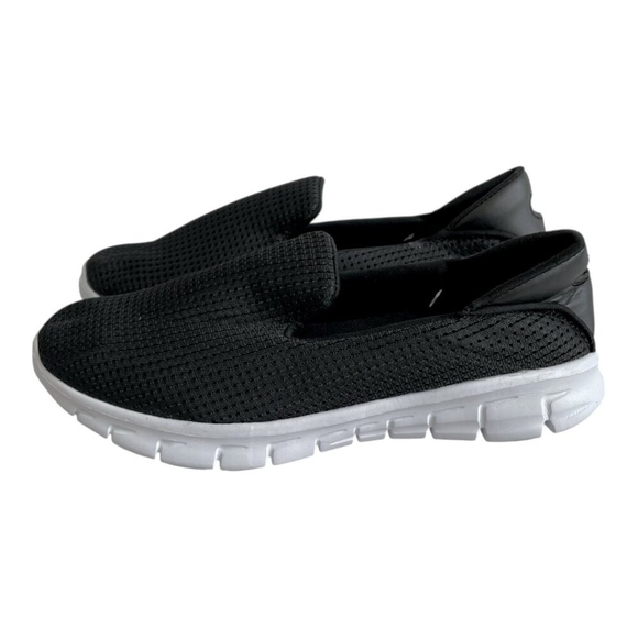 Step into comfort with these women’s black mesh athletic moccasins, designed for walking, or casual everyday wear. Featuring a lightweight breathable mesh upper, cushioned insole, and flexible white sole for all-day comfort and support. The pull on design ensures a secure fit, while the sleek black-and-white color combination offers versatile style that pairs effortlessly with any outfit. New without box, clean and ready to wear—perfect for fitness, travel, or casual outings.