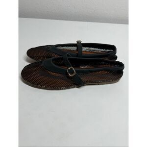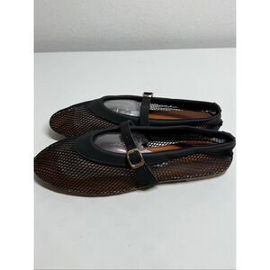 black mesh Mary Jane flats with buckle straps