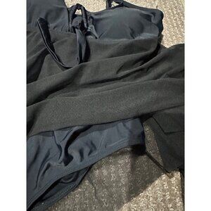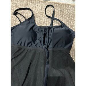 Womens Black Mesh Overlay Swimsuit Large Adjustable Straps & Ruched Front Design