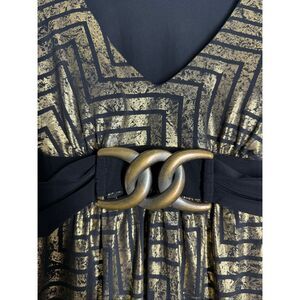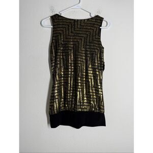 Womens Black & Metallic Gold Dressy Banded Bottom Tank Top Size S See Notes