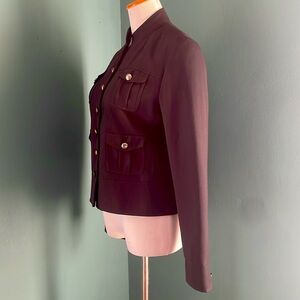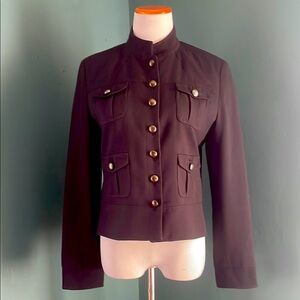 Elevate your wardrobe with this chic black military style jacket. Perfect for any occasion, it combines elegance with a modern edge