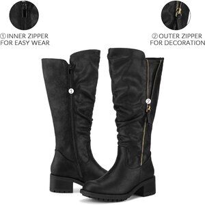 Practical Design: This boot features two zippers—an outer decorative zipper that is non-functional, and an inner zipper for effortless on-and-off convenience