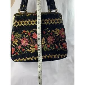 Women's Black Needle-Point Vintage 60's Square Tapestry Carpet Chic Shoulder Bag