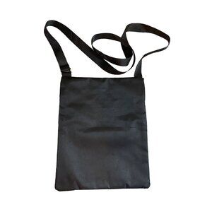 Womens Black Nylon Crossbody Bag Gold Tone Emblem Adjustable Zipped Pockets Goth