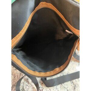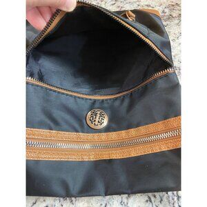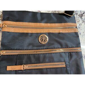 Black Nylon Crossbody Bag Tan Faux Leather Accents Zipper Pockets Adjustable