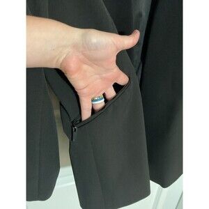 This listing is for a women's black open front blazer by Vince Camuto in size 14. The blazer is designed for a regular fit and is perfect for a work or office setting. It comes as a single jacket piece and is essential for adding a professional touch to any outfit. The classic black color and sleek design make it a versatile wardrobe staple for any woman.