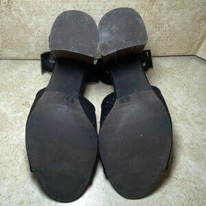 Womens Black Open-Toe Block Heel Sandals With Ankle Straps & Buckle Closure Sz 8