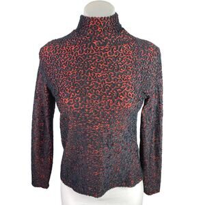 Women's Black Orange Textured Jaquard Turtleneck long Sleeve Sweater Top Size S