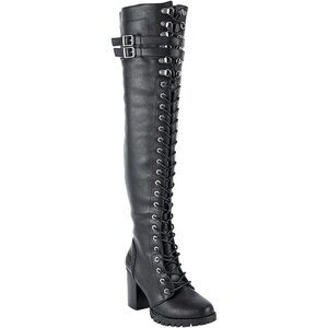 Women's Black Over The Knee Zip Buckle Soft Thigh High Lace Up Tall Boots