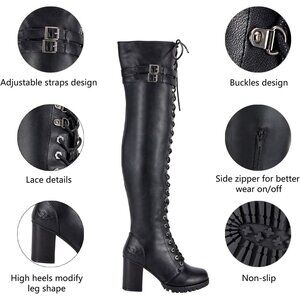 Easy to Wear The ladies Thigh High boots have an inner zip, so it's easy to put on/take off. Adjustable super long lace-up can be adjusted at any time according to your preference. They are very aura and elegant, and you can walk out of confident steps.