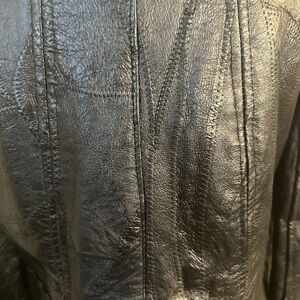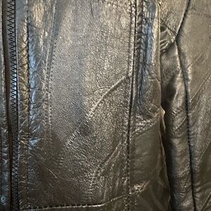 Women's Black Patchwork Leather Jacket Mid hip Small