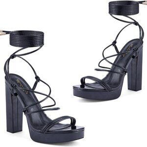 Features: These open toe sandals feature a chunky 5.12-inch heel and a supportive platform of 1 inch, giving you height while keeping stability. The lace-up design ensures a perfect fit, with a special strap on the toe for comfort and slip resistance. Versatile and stylish, perfect for dressing up or down.