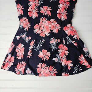 Women's Black & Pink Tropical Floral Print Modest One Piece Swim Dress Size 2XL