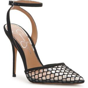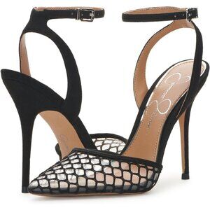 Women's Black Pirrie 2 Faux Synthetic Rubber Suede Ankle Strap Slingback Heels
