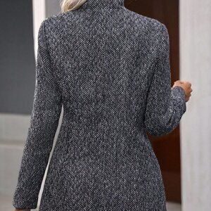 Womens Black Plaid Pattern Flap Pocket Drop Shoulder Belted Tweed Overcoat