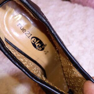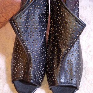 Women's Rue 21 Black Platform Peep Toe Heeled Boot Size L 8/9. Worn once, great condition. The heels also have a perforated/punched daisy design. Super sexy. Great condition.