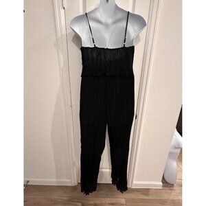 Womens Black Pleated Spaghetti Strap Jumpsuit Size L Polyester & Spandex Blend