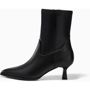 Women's Black Pointed Toe Ankle Boots Stacked Kitten Low Heel Side Zipper
