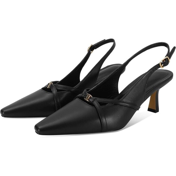 Women's Black Pointed Toe Slingback Pumps Low Kitten Heels Dress Shoes