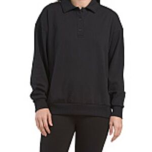 Stay comfortable and stylish with this black polo sweatshirt. Perfect for casual outings or lounging at home.