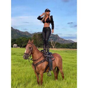 The pointed toe adds a trendy element, enhancing the overall style of these Western riding tall boots.