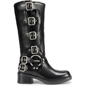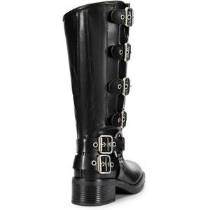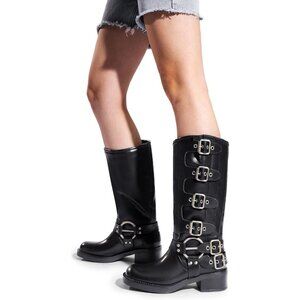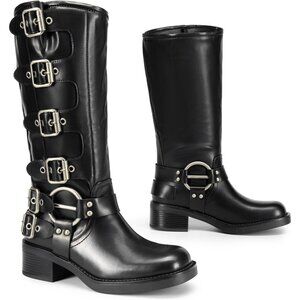 ⚡Women's Black Polyurethane Knee High Riding Side Zipper Chunky Heel Boots