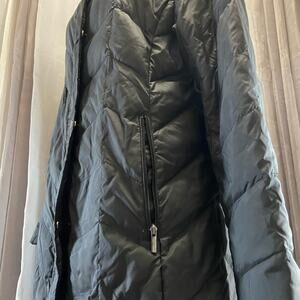 Stay warm and stylish with this elegant black quilted coat. Perfect for chilly days.