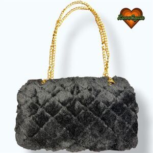 #womens #purse #bag #shoulderbag #crossbody black winter fall fur vintage thrift chic secondhand y2k 2000s 90s gold minimalist furry explorepage
