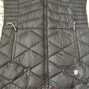 Stay warm and stylish with this black quilted jacket. Perfect for chilly days, it offers comfort and a sleek look.